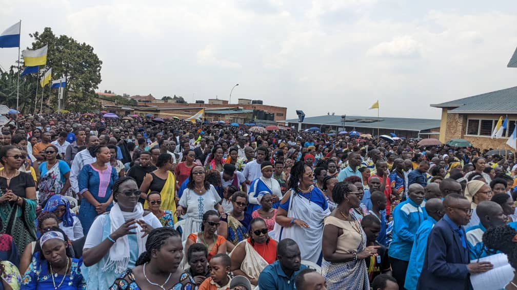 Yifashishije ubwinshi bw’abari bitabiriye ibirori byo guhimbaza umunsi Mukuru wa Asomusiyo, Musenyeri Selestini yagaragaje impamvu ari ngombwa cyane kwagura ubutaka bwa Kibeho.